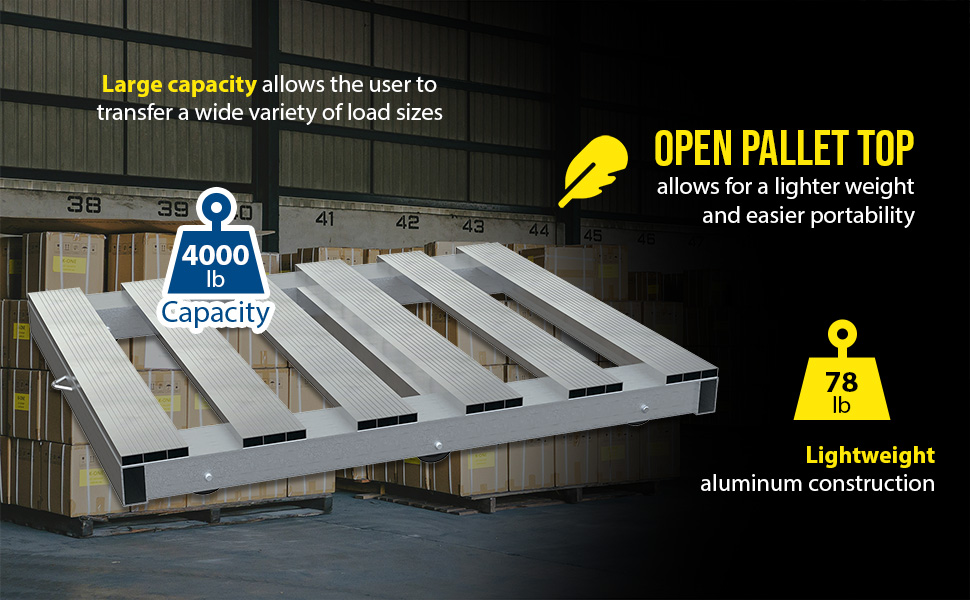 DOL-ST-4048-6NT DOL-ST-4048-6NTAluminum Pallet Dolly with Pallet Top 40 In. x 48 In. 4000 Lb. Capacity SilverUniform Capacity (lb.): 4000