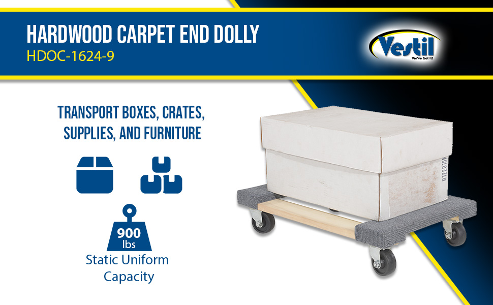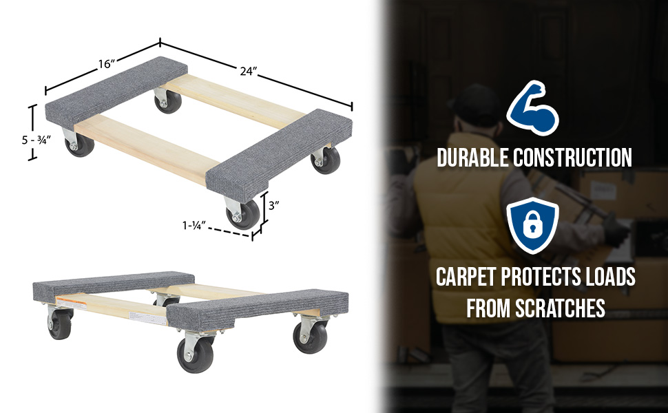 | Hardwood Carpet End Dolly 24 In. x 16 In. x 5-3/4 In. 900 Lb. Capacity | Uniform Static Capacity (lb.): 900 Deck Width (in.): 16 | 9 |