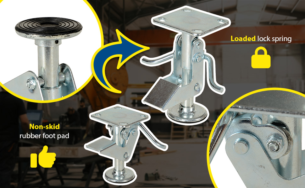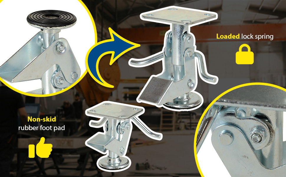 Our economical floor locks help to stabilize mobile equipment during loading and unloading. They are perfect for keeping carts, trucks, work benches, and other portable equipment stationary. All of these floor locks are spring loaded and offer a non-skid rubber foot pad to keep equipment in place. The heavy-duty steel construction has a bright zinc plated finish.