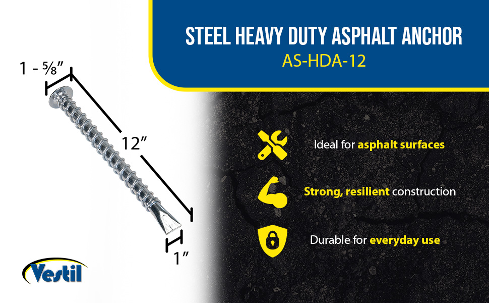 AS-HDA-12 AS-HDA-12Steel Heavy Duty Asphalt Anchor 1-5/8 In. x 1-5/8 In. x 12 In. SilverShaft Diameter (in.): 1