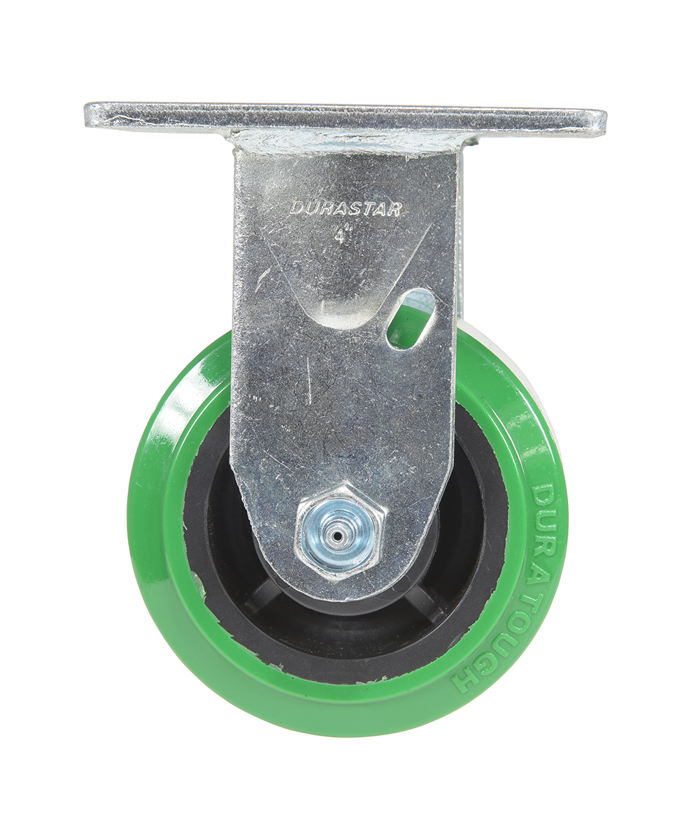 Made with 100% pure polyurethane tread. This caster is a great upgrade for standard polyurethane. Designed using a new liquid cast flow fusion that ensures a 100% mechanical bond to core and "zero" trapped air. It has a high resistance to debris and most chemicals. The proprietary tread provides good floor preservation, and has a longer life performance than standard polyurethanes. Green tread color. 90-95 shore a. Wheel center is constructed of polyolefin.