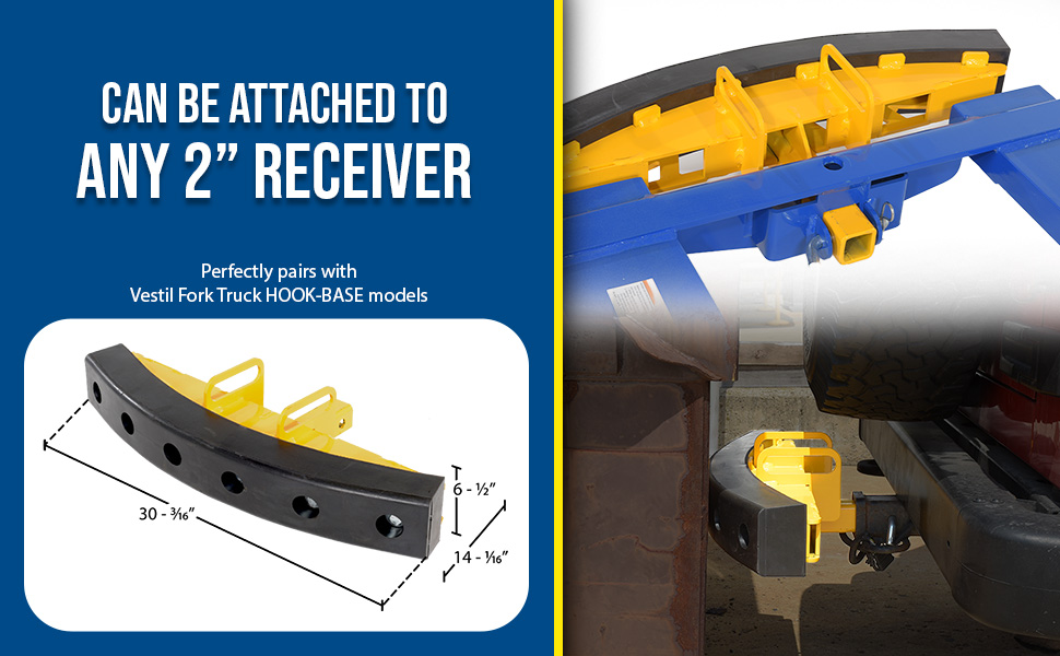 This hook base bumper is a nice addition to any industrial setting. With quick and seamless attachment, the unit is able to be used immediately. The base is constructed of steel to keep up well with the wear and tear of daily use. The front push bumper, made of rubber, helps to minimize any damage and abrasion that may occur. Steel portion of unit is powder coated for built in added toughness.