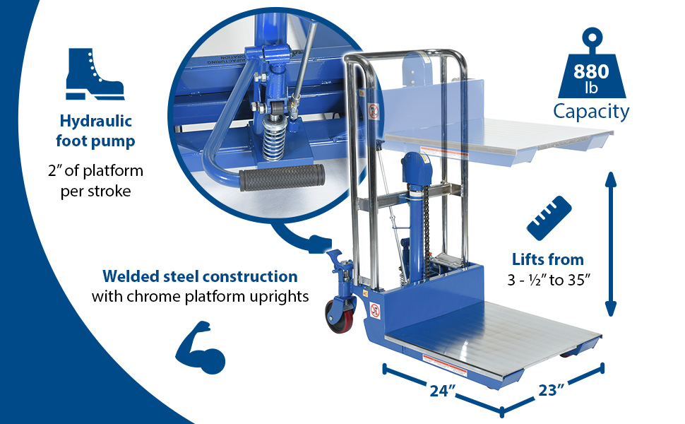 HYD-10 HYD-10Steel Portable Foot Pump Hefti-Lift 41 In. x 69 In. 880 Lb. Capacity BlueUniform Capacity (lb.): 880