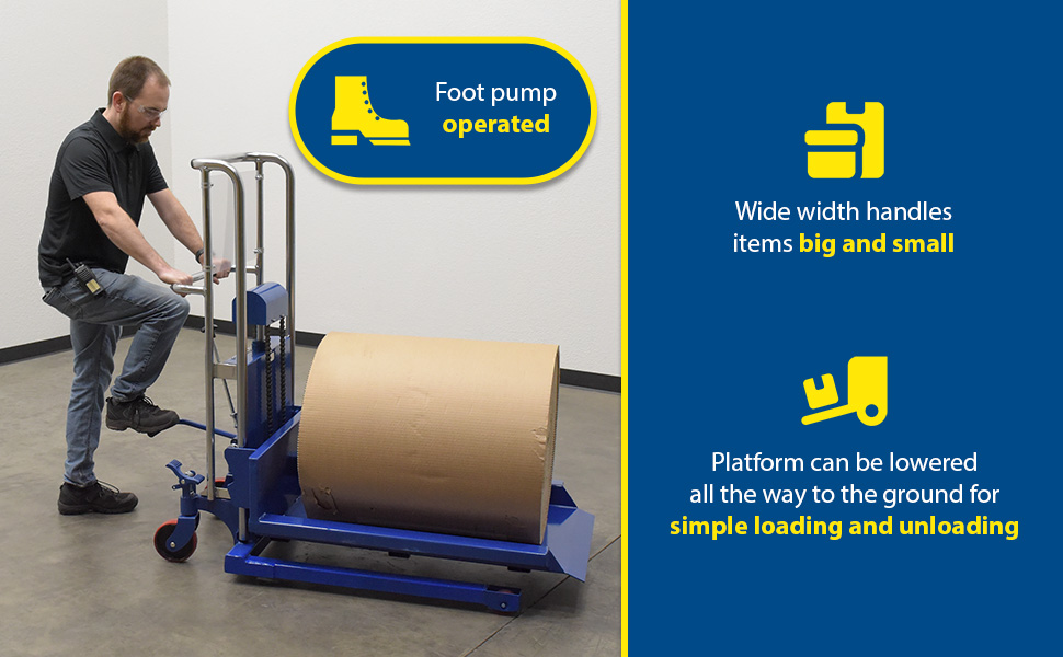HYD-10-EP HYD-10-EPSteel Portable Foot Pump Hefti-Lift 57 In. x 69 In. 300 Lb. Capacity BlueUniform Capacity (lb.): 300