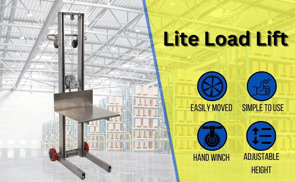 LLW-202058-FW LLW-202058-FWSteel Lite Load Lift With Winch and Fixed Wheels 20 In. x 20 In. Platform 400 Lb. Capacity BlueUniform Capacity (lb.): 400