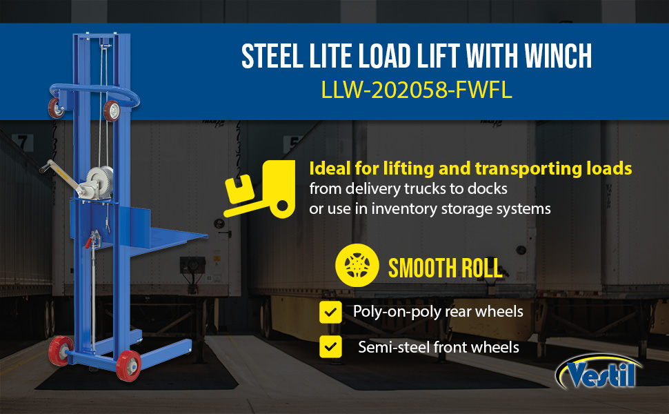 LLW-202058-FWWL LLW-202058-FWWLSteel Lite Load Lift With Winch, Fixed Wheels and Wheel Lock 20 In. x 20 In. Platform 400 Lb. Capacity BlueUniform Capacity (lb.): 400