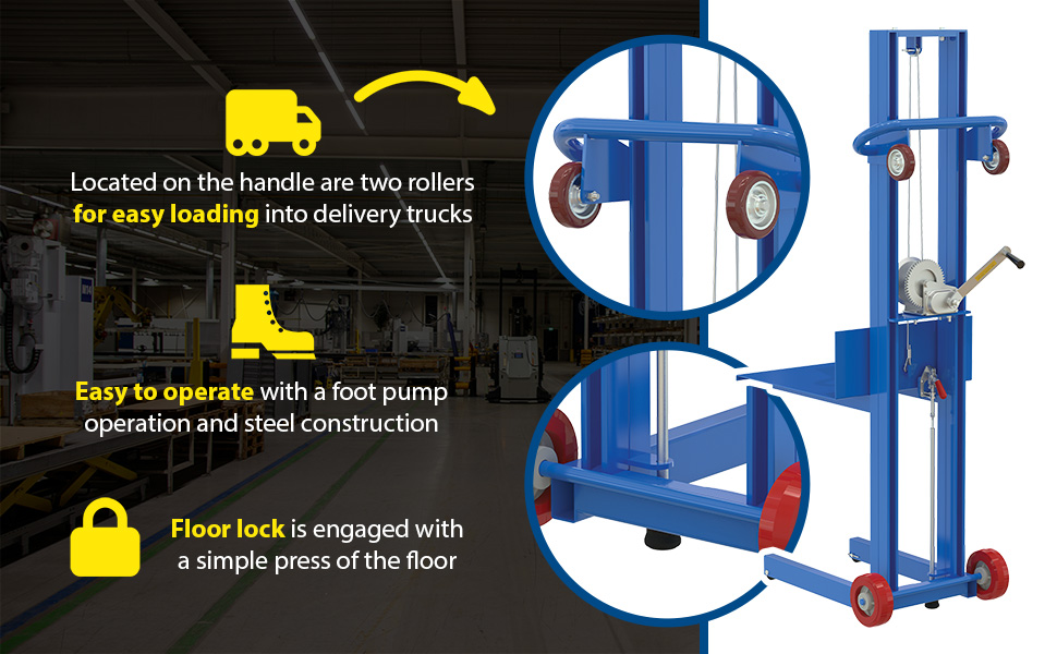 LLW-202058-FWFL LLW-202058-FWFLSteel Lite Load Lift With Winch, Fixed Wheels and Manual Floor Lock 20 In. x 20 In. Platform 400 Lb. Capacity BlueUniform Capacity (lb.): 400