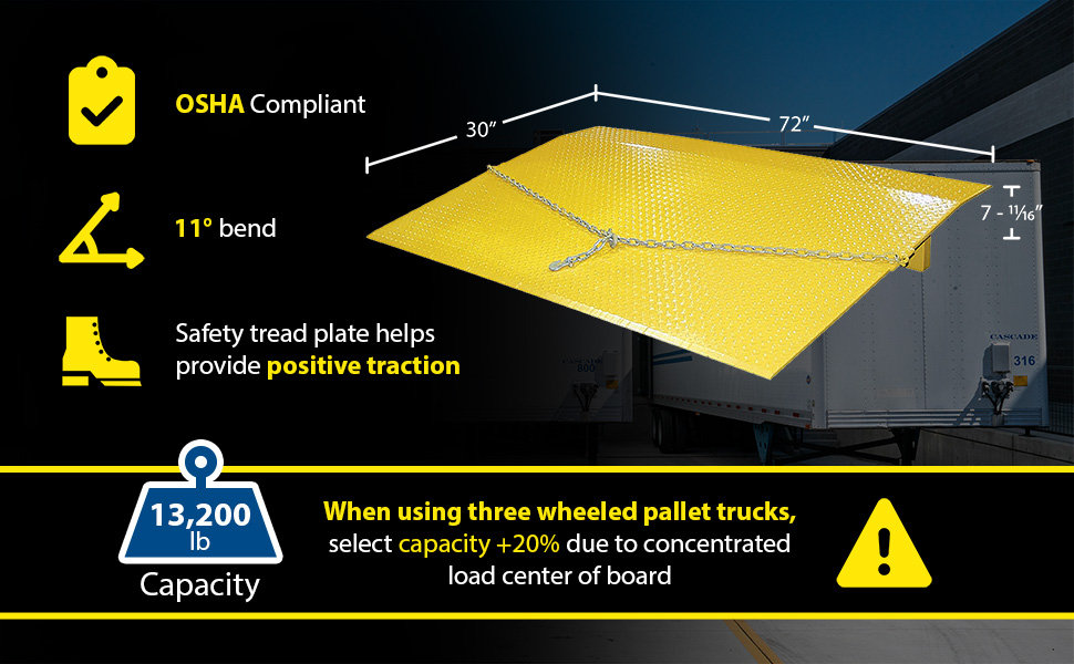 | Steel Truck Dock Plate 30 In. x 72 In. x 7-11/16 In. 13,200 Lb. Capacity Yellow | Uniform Capacity (lb.): 13200 Height Difference (in.): 4 | 369 |