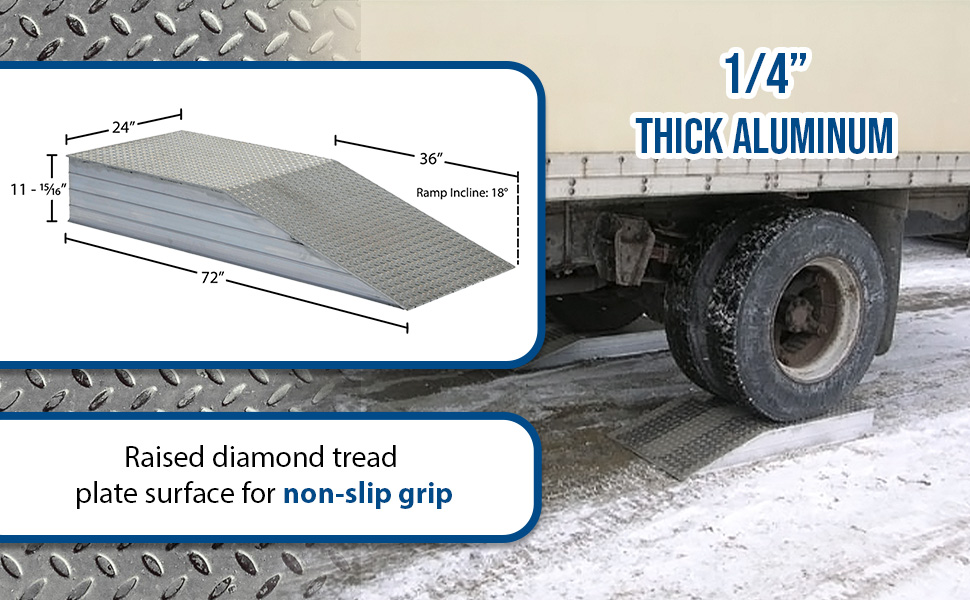 | Aluminum Tread Plate Wheel Riser with Roll Off Guard 72 In. x 18 In. x 12 In. 30000 Lb. Capacity Silver | Uniform Capacity (lbs.): 30000 | 133 |
