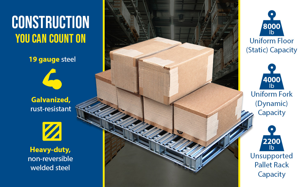 SPL-4848 SPL-4848Galvanized Steel Pallet 48 In. x 48 In. x 4-3/4 In. 8,000 Lb. Floor Capacity GrayUniform Floor (static) Capacity (lb.): 8,000