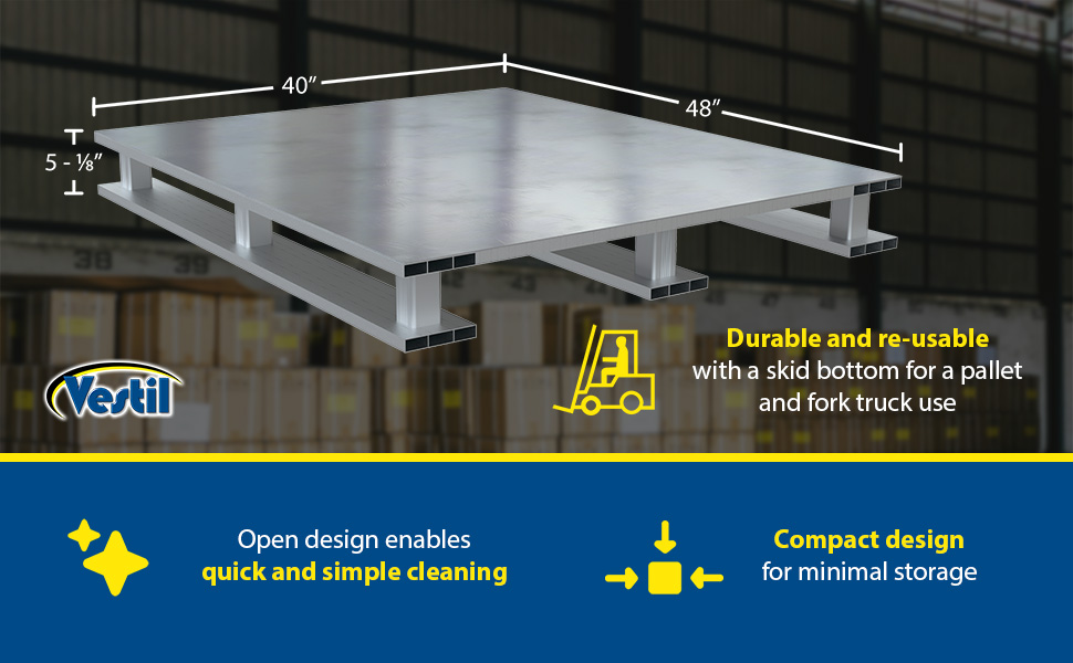 AP-4048-SB AP-4048-SBAluminum Skid Bottom Pallet 47-7/8 In. x 40 In. x 5-1/16 In. 6000 Lb. Capacity SilverStatic Capacity (lb.): 6,000