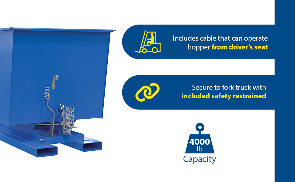 | Steel Medium Duty Self Dumping Hopper 2 Cubic Yard 4000 Lb. Capacity Blue | Uniform Capacity (lb.): 4,000 Steel (gauge): 10 | 690 |