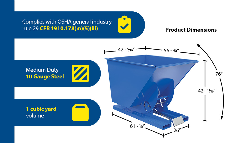| Steel Medium Duty Self Dumping Hopper 1 Cubic Yard 4000 Lb. Capacity Blue | Uniform Capacity (lb.): 4000 Steel (gauge): 10 | 545 |