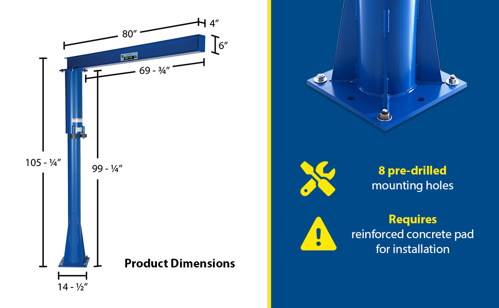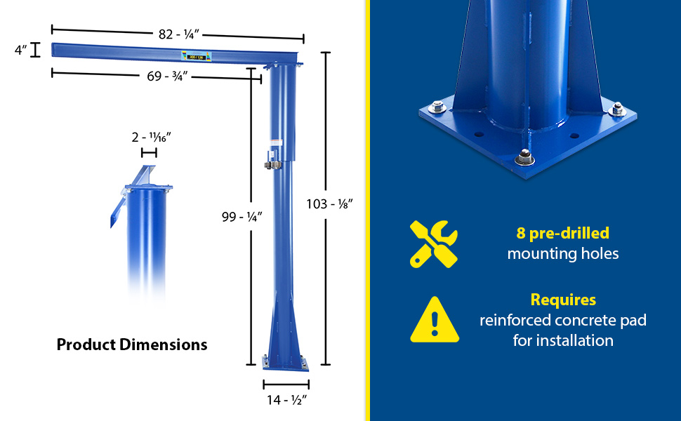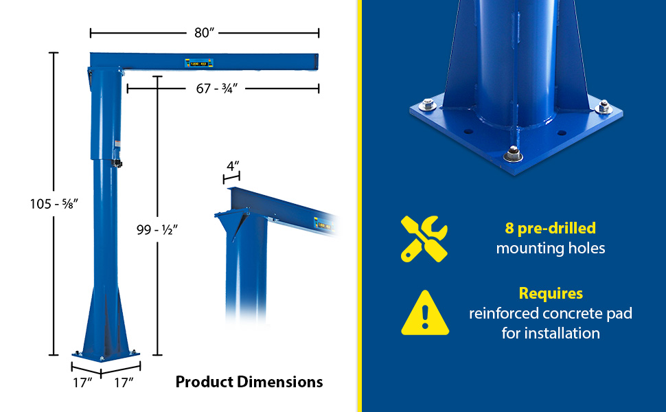 JIB-FM-40 JIB-FM-40Steel Floor Mounted Jib 80-3/8 In. I-Beam 4000 Lb. Capacity BlueUniform Capacity (lb.): 4000