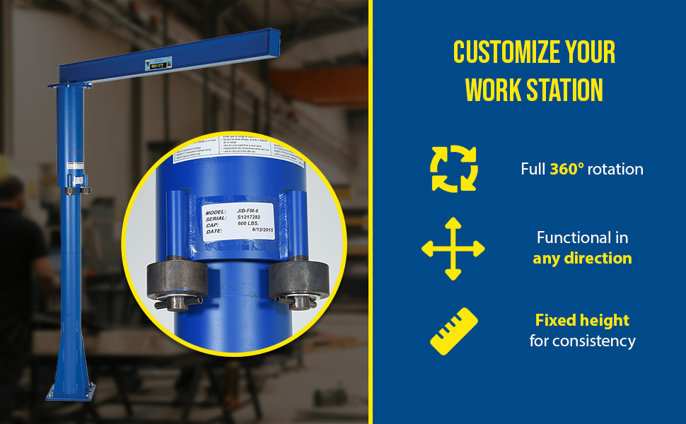 JIB-FM-10 JIB-FM-10Steel Floor Mounted Jib 80 In. I-Beam 1000 Lb. Capacity BlueUniform Capacity (lb.): 1000