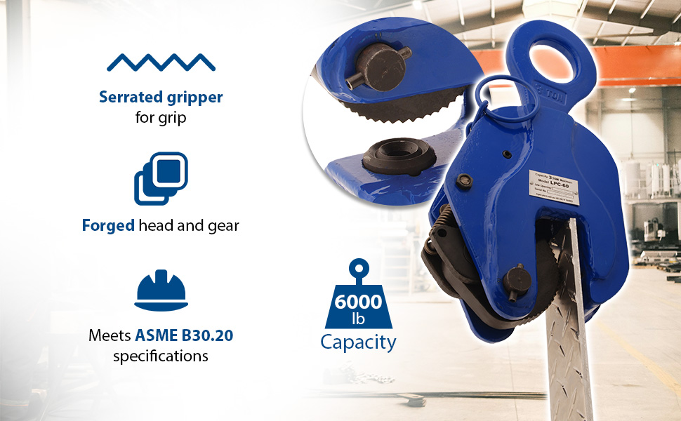 LPC-60 LPC-60Steel Vertical Positive Locking Plate Clamp 15 In. x 4 In. x 8 In. 6000 Lb. Capacity BlueUniform Working Load Limit (lb.): 6,000