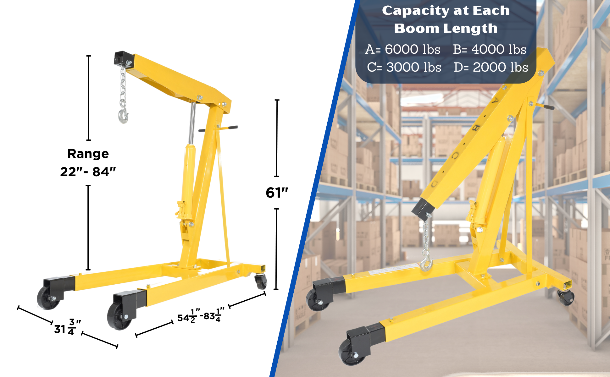 EHN-60-T EHN-60-TSteel Shop Crane Engine Hoist with Telescopic Legs 6000 Lb. Capacity YellowUniform Capacity (lb.): 6,000