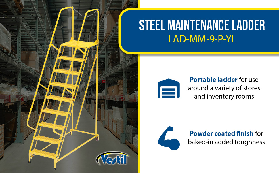 | Steel Maintenance Ladder 58 Degree 9 Perforated 24 In. Step Width 350 Lb. Capacity Yellow | Uniform Capacity (lb.): 350 Step Angle (degrees): 58 | 279 |
