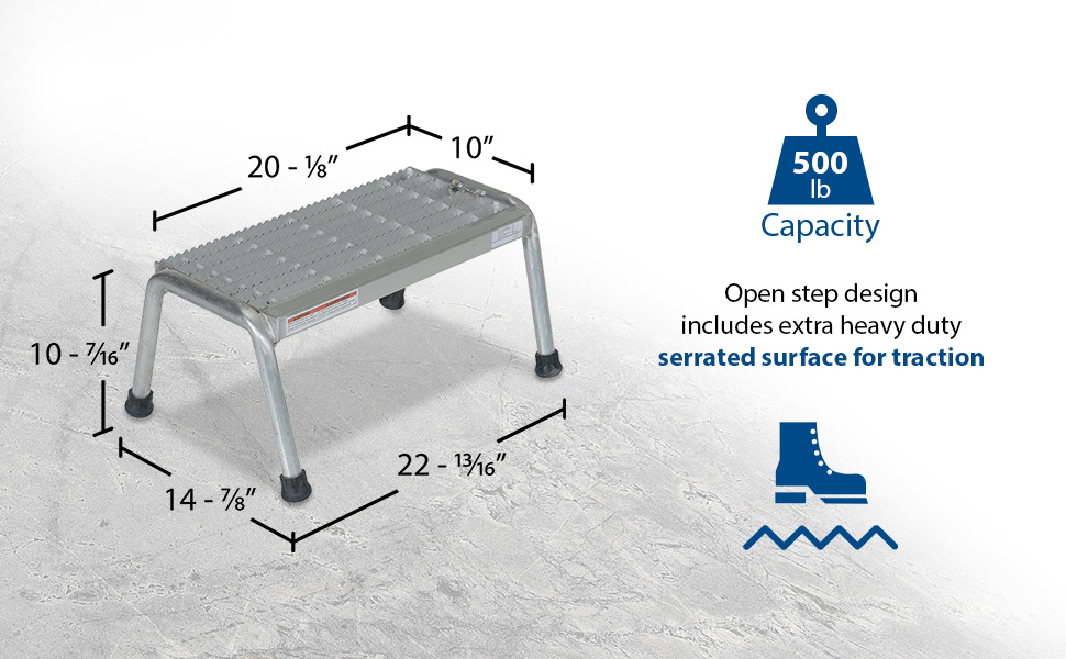 | Aluminum 1 Step Stand 500 Lb. Capacity Silver | Uniform Capacity (lb.): 500 Number of Steps: 1 | 13 |
