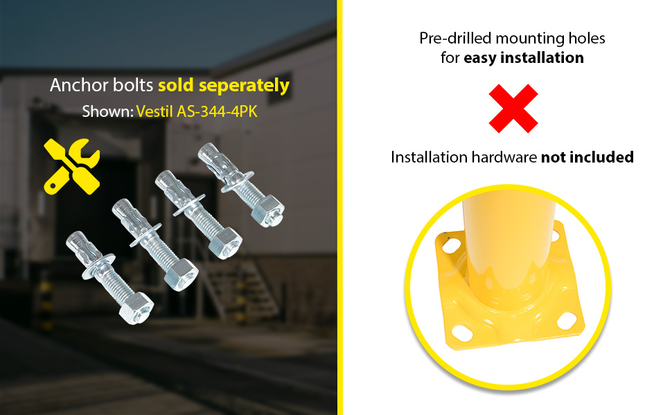 BOL-48-4.5 BOL-48-4.5Steel Pipe Safety Bollard 48 In. x 4-1/2 In. YellowAnchor Bolt: AS-344