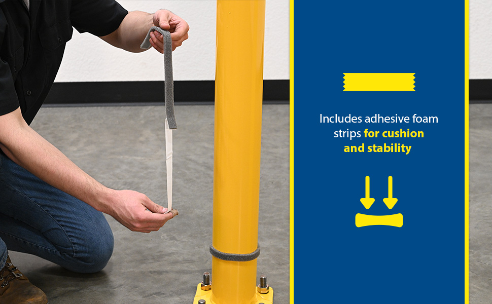 Eliminate the need for costly scraping and painting of unsightly bollards. The low density polyethylene thermoplastic molded sleeves slide over existing bollards. Covers are 1/4" or 5/8" thick. Includes attaching foam strips. Additional sizes, colors, and reflective stripes available. Contact factory.