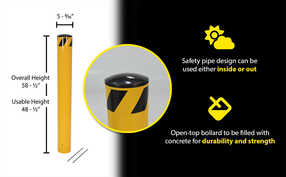 | Steel Pour In Place Bollard 48 In. x 4-1/2 In. Yellow | Usable Height (in.): 48-1/2 Outside Diameter (in.): 4-1/2 | 47 |