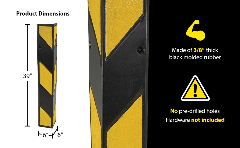 Heavy-duty corner protectors are designed to protect corners from damage. Versatile protection for warehouses, offices, overhead door frames and tracks, or any 90 degree corner. Corner Protector, model VCP-42U, stop costly damage to facility corners and walls. Safety yellow, polyethylene unit maintains appearance without constant upkeep. Hardware kit is included to make installation into any wall surface quick and easy.