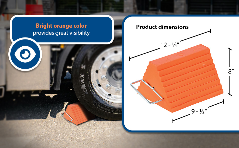| Polyurethane Wheel Chock 7-1/2 In. x 6-9/10 In. x 8-1/2 In. Tire Overall Depth 35 In.15 Ton Capacity Orange | Uniform Capacity (tons) GVWR: 15 Fits Tire Size (in.): Up to 35 | 4 |