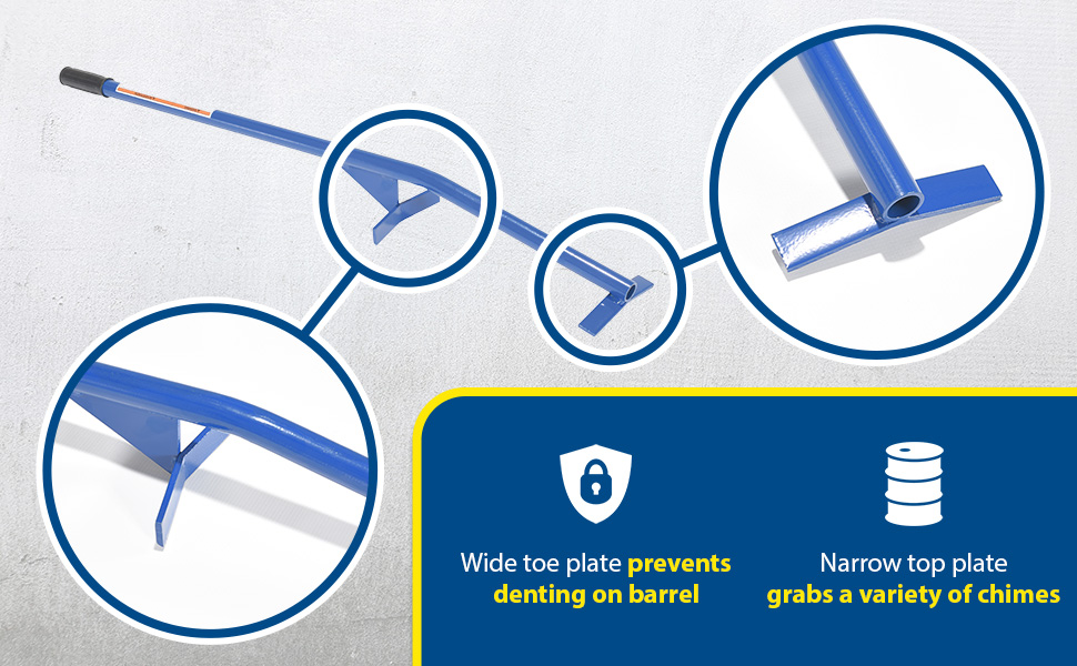 Sometimes you will find that drums are not in their proper position and lifting or lowering those drums manually can be a dangerous job. To ease that burden, look for the manual drum upender! A drum upender provides the leverage needed for tilting horizontal drums to the vertical position. Designed with a narrow top plate this tool easily secures a variety of chimes. Built of durable steel with a baked in powder coat finish.