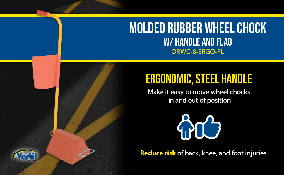 ORWC-8-ERGO-FL ORWC-8-ERGO-FLMolded Rubber Wheel Chock With Handle and Flag 8 In. Orange/YellowChock Width (in.): 9-1/4