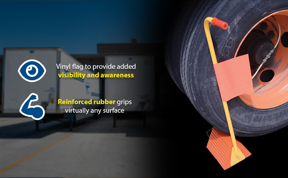 Models with a suffix of -FL, a vinyl flag is included to provide added visibility and awareness to the chock.