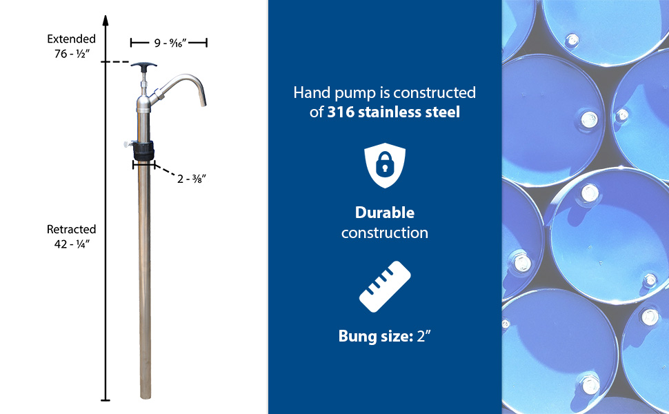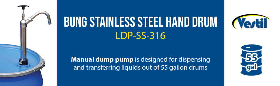 LDP-SS-316 LDP-SS-316Bung Stainless Steel Hand Drum Pump 2 In. SilverAccommodates: 55 gallon drum
