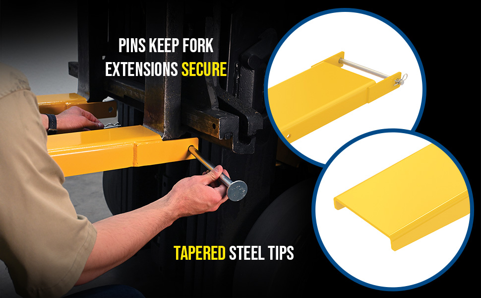 FE-5-48-P FE-5-48-PSteel Pin Style Fork Extensions 5 In. x 48 In. 4000 Lb. Capacity YellowUniform Capacity Per Pair (lb.): 4,000