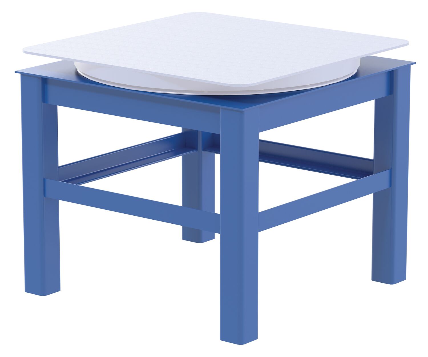 Optional elevated base for the manual carousel helps maintain products at an elevated height. A square design with four legs,one in each corner, for stability.