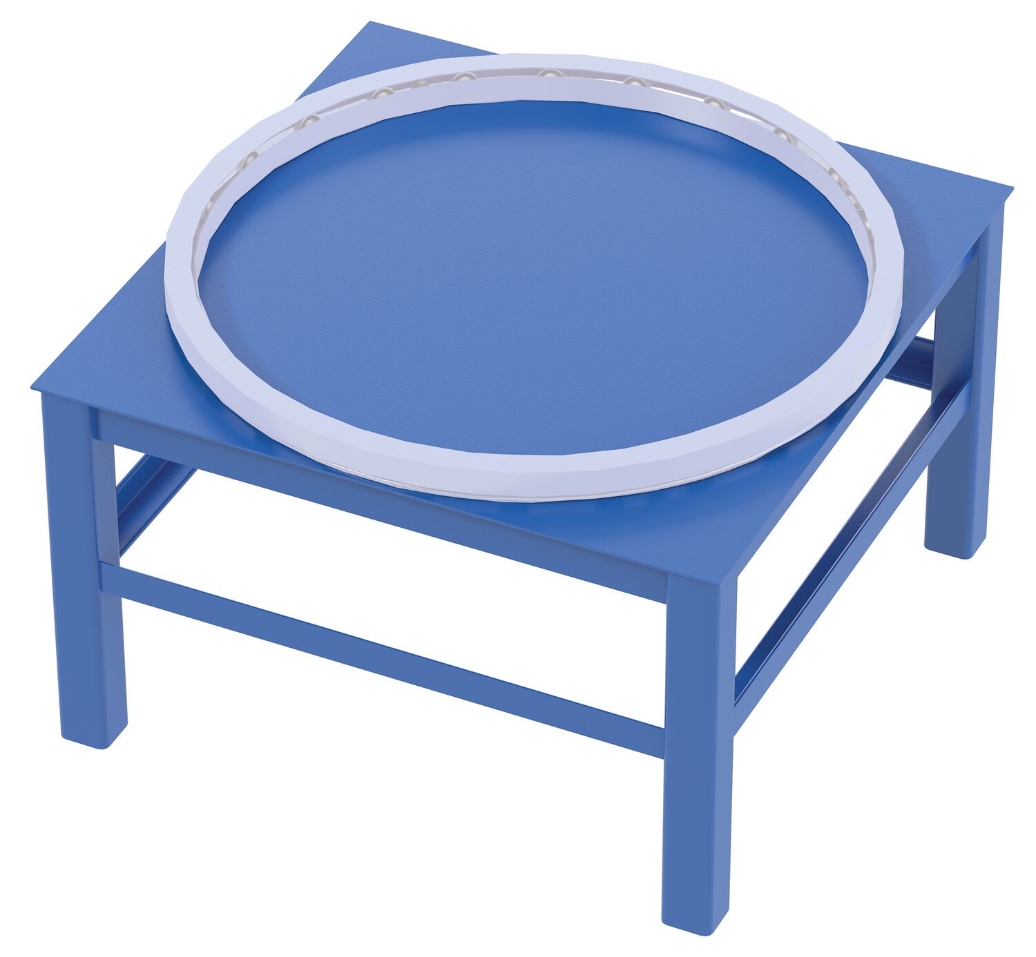 Optional elevated base for the manual carousel helps maintain products at an elevated height. A square design with four legs,one in each corner, for stability.