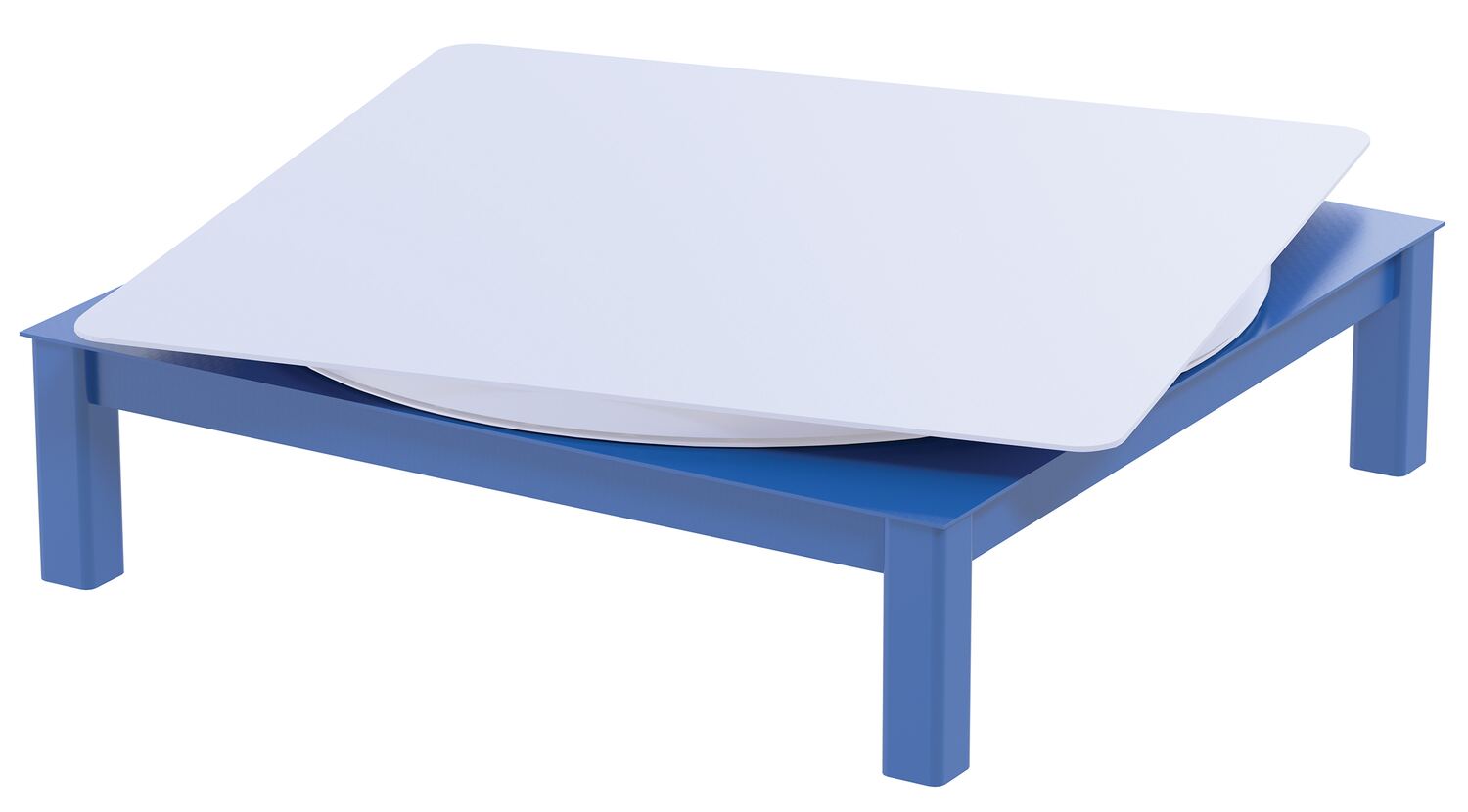 Optional elevated base for the manual carousel helps maintain products at an elevated height. A square design with four legs,one in each corner, for stability.