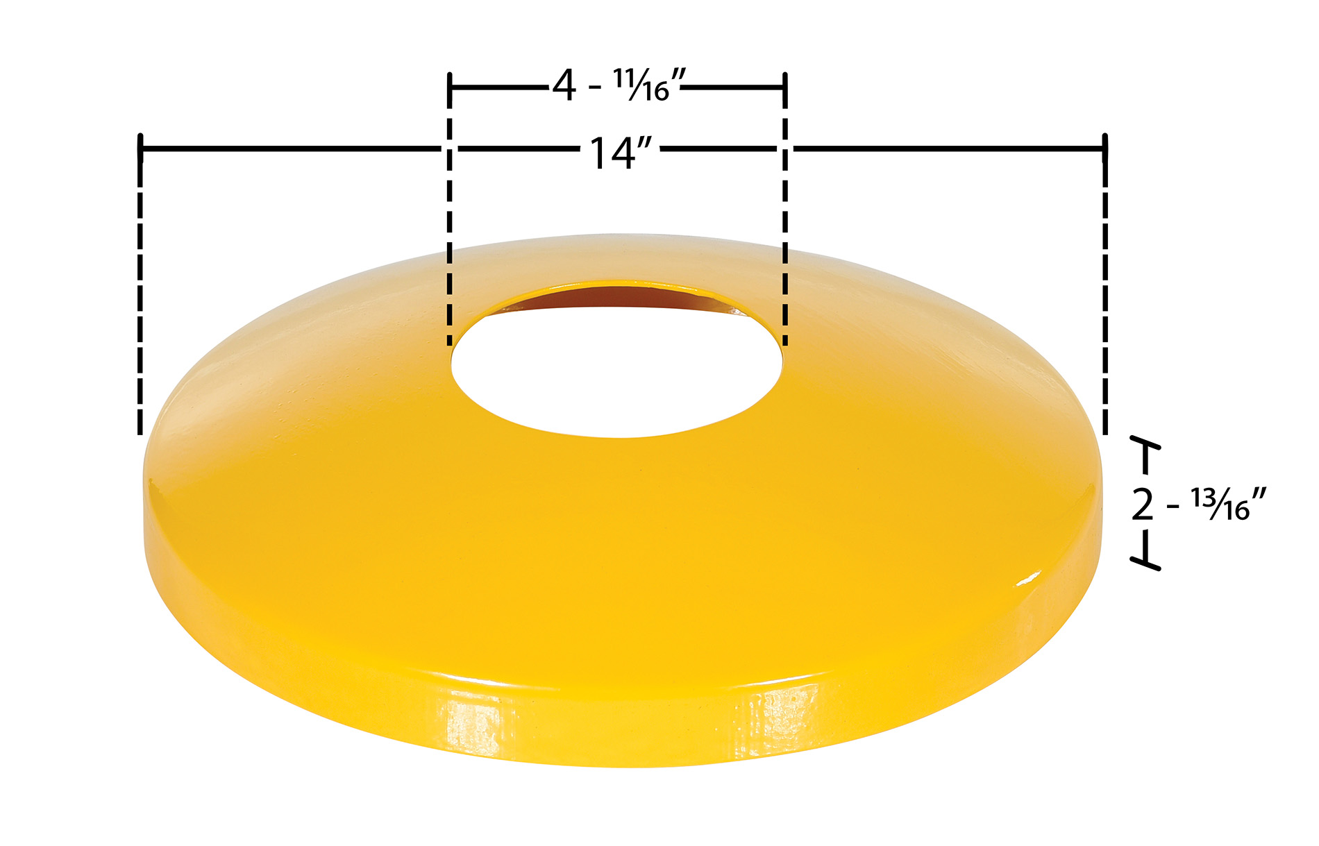 Prevent accidents and injuries from people tripping over raised bolts. The easy to use protective dome cover for bollards slides over bollards covering mounting hardware and base plate for a nice clean finish. Durable yellow powder coat finish. Steel construction. No hardware required.