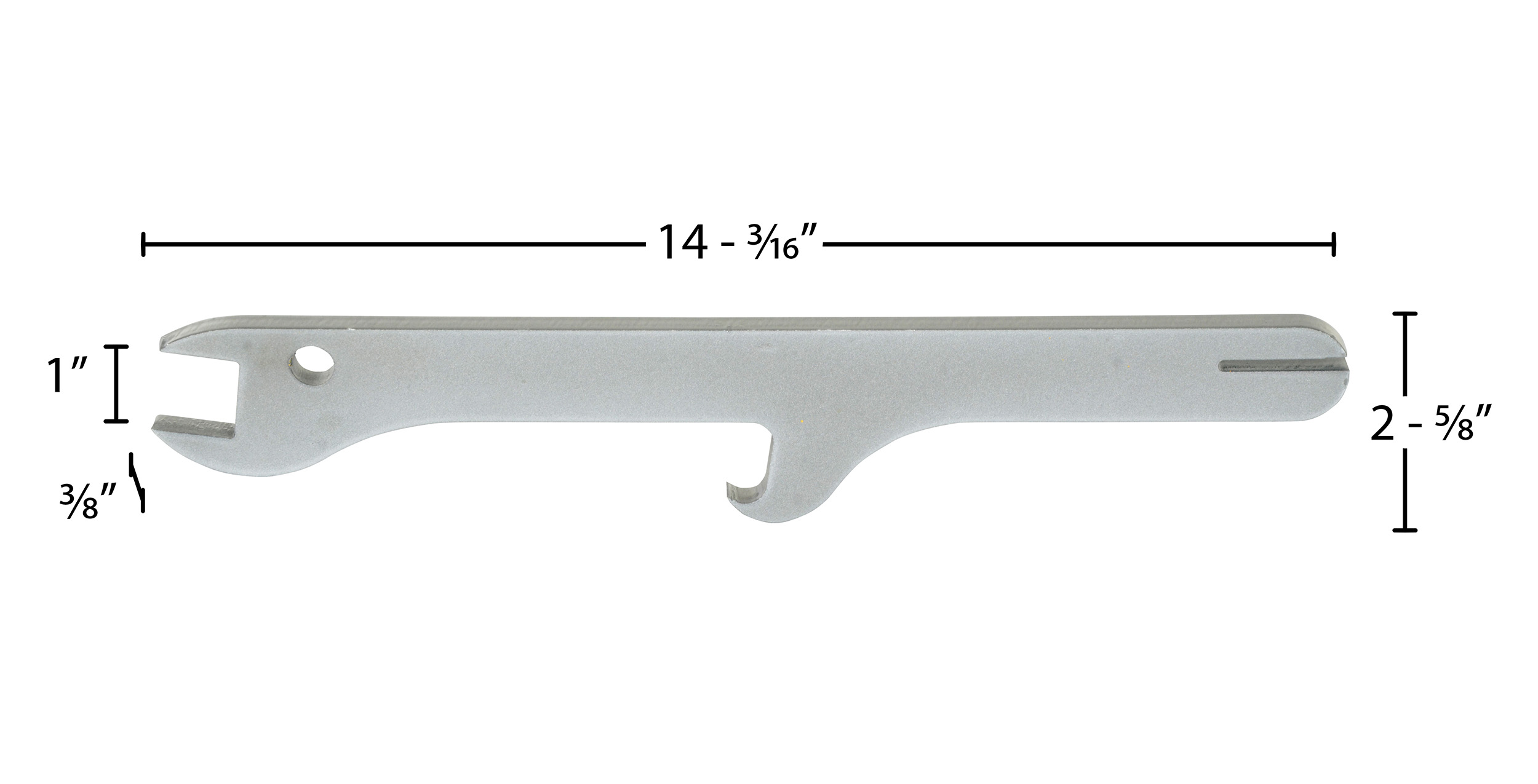 Finally an answer for opening those stubborn lids! Multi-purpose design for use with removable head steel drums. A special hook is used for breaking open-lid seals, and long handle provides adequate torque for easy operation. Integral wrench for use with removable ring bolt and nut. Slotted end used to close drum ring lever lock. Steel construction with powder coat silver finish.