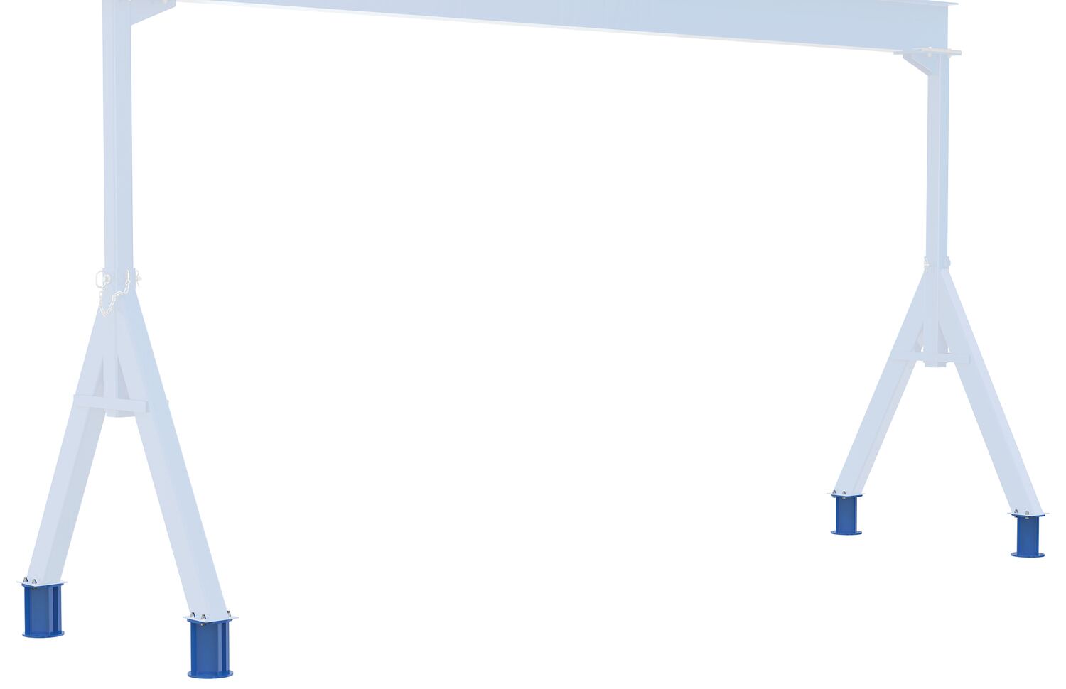 Factory Installed Steel Stationary Legs Kit Quantity 4 For Fixed Height Steel Gantry CranesStationary leg sets are a great accessory to a gantry crane. By assigning the crane in a specific area the legs set create a solid base to a workplace. The set continues to have all the strength and durability of its portable counterpart, except the ability to roll. Factory installed.