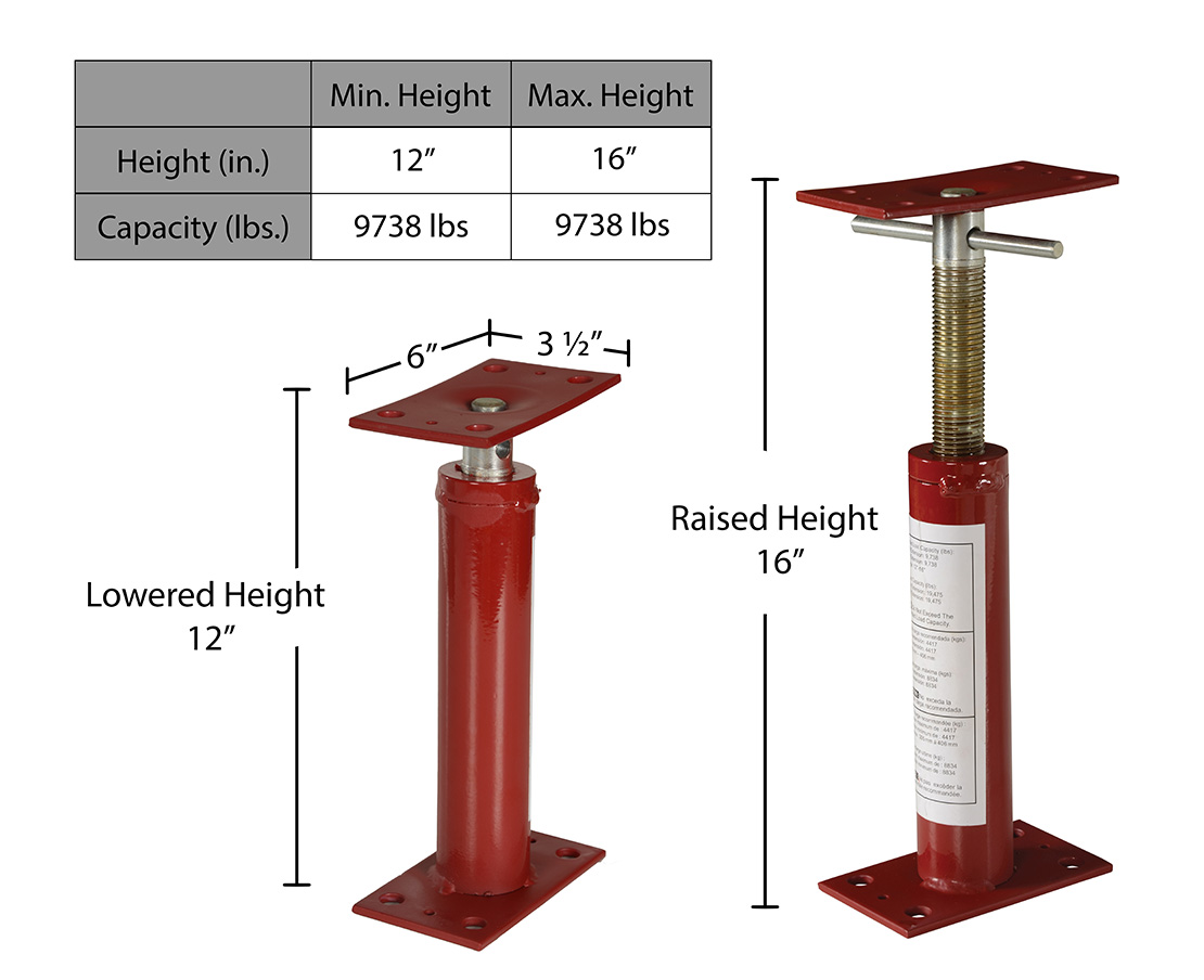 Height Minimum/Maximum (in.): 12 to 16 Minimum Height Capacity (lb.): 9738 Maximum Height Capacity (lb.): 9738