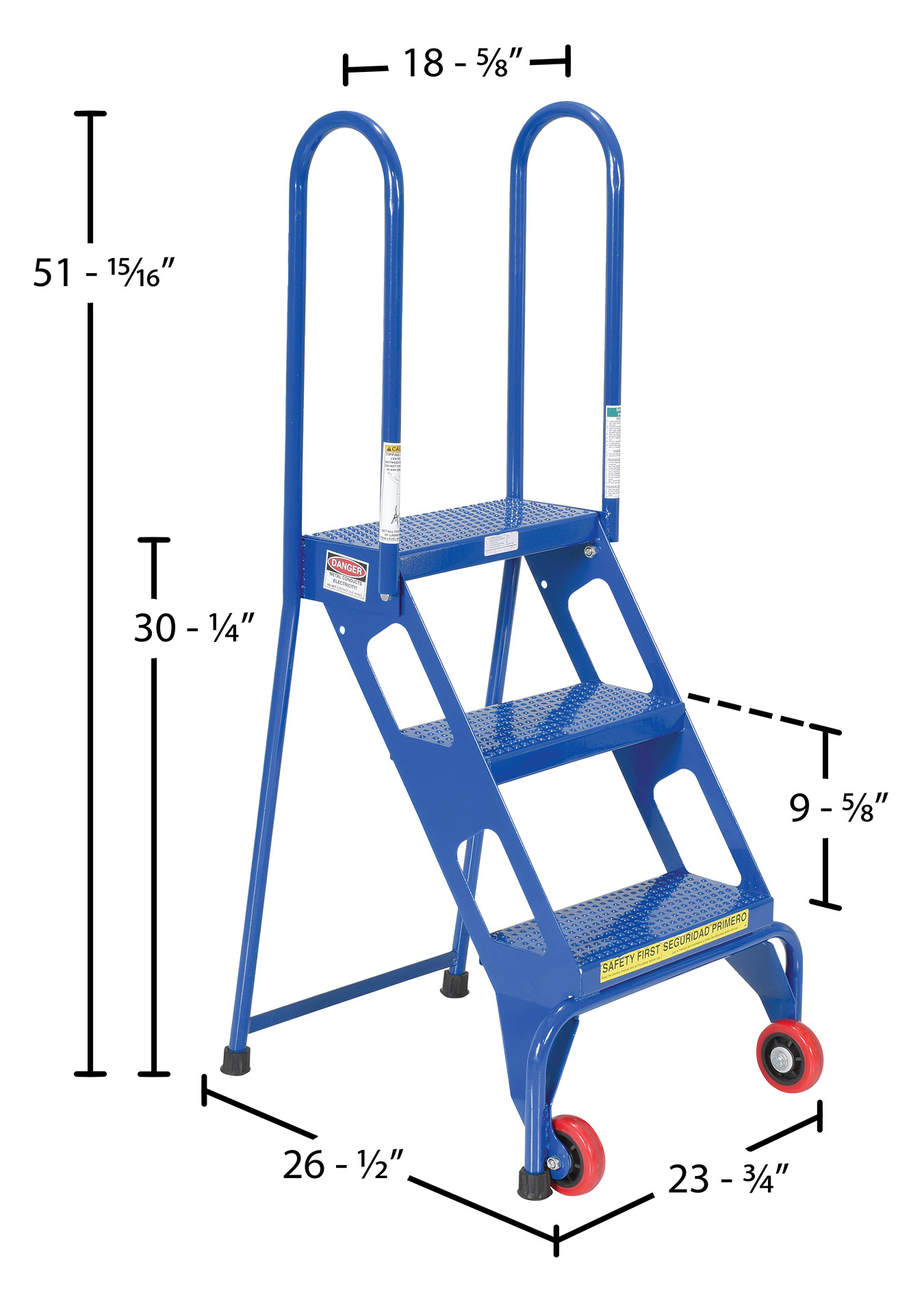 Steel Folding Ladder with Wheels 3 Step 350 Lb. Capacity Blue