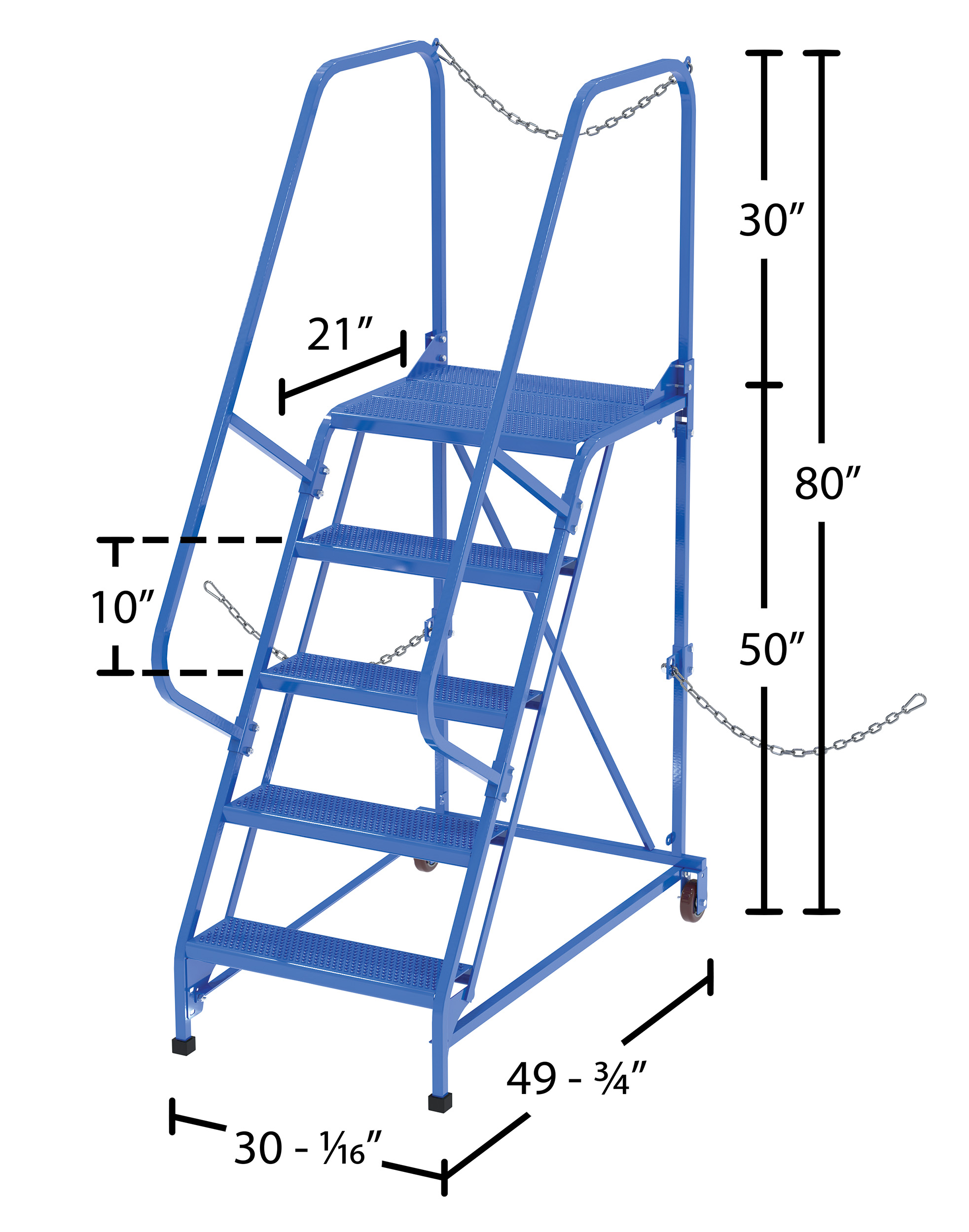 | Top Step Height (in.): 50 | Wheel Quantity/Diameter/Width (in.): (2) 4 x 1-1/4 | Wheel Type: Rigid Poly-on-Poly |
