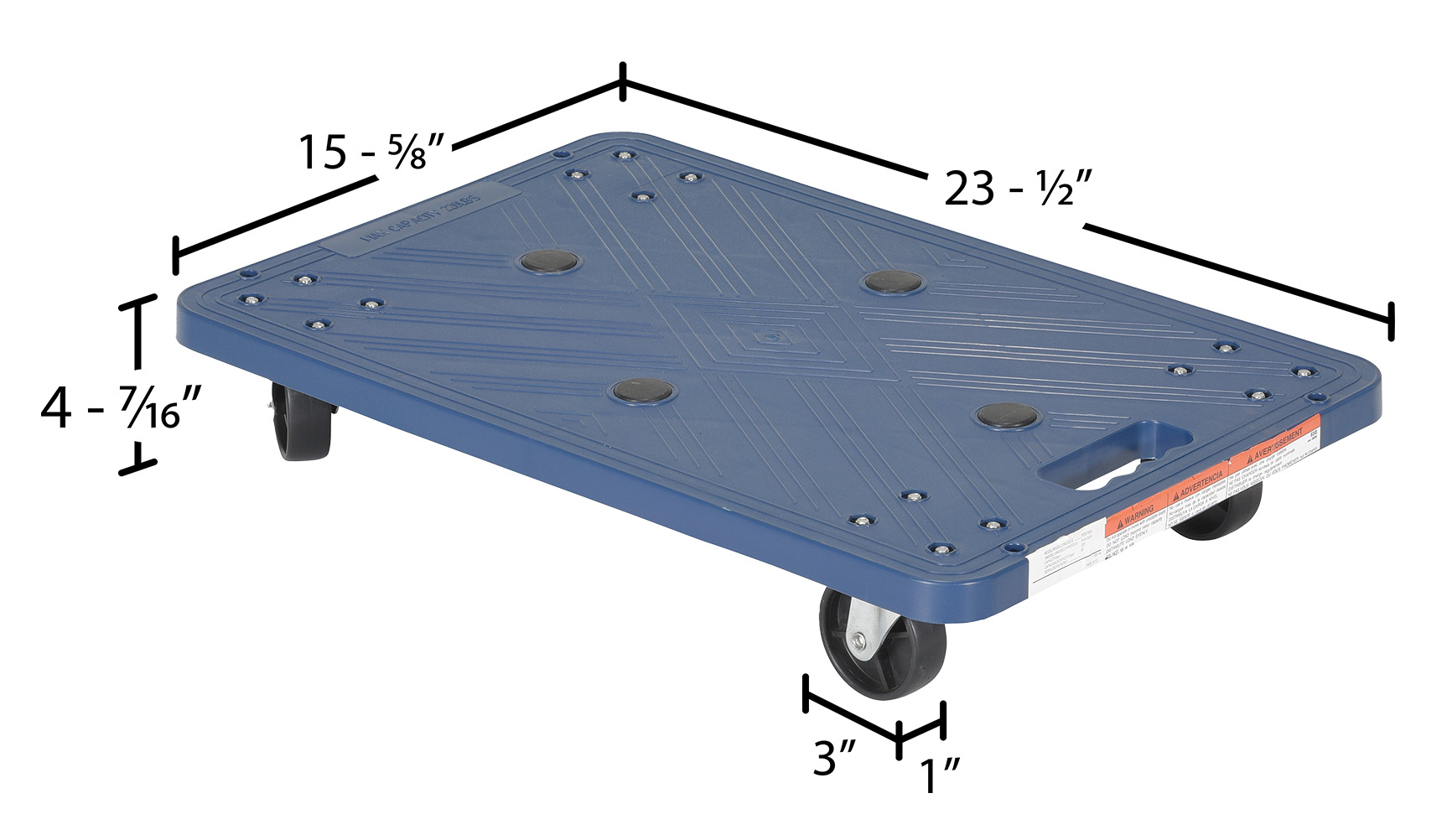 | Caster Material: Poly on Poly | Deck Height (in.): 4-7/16 | Overall Length (in.): 15-5/8 |
