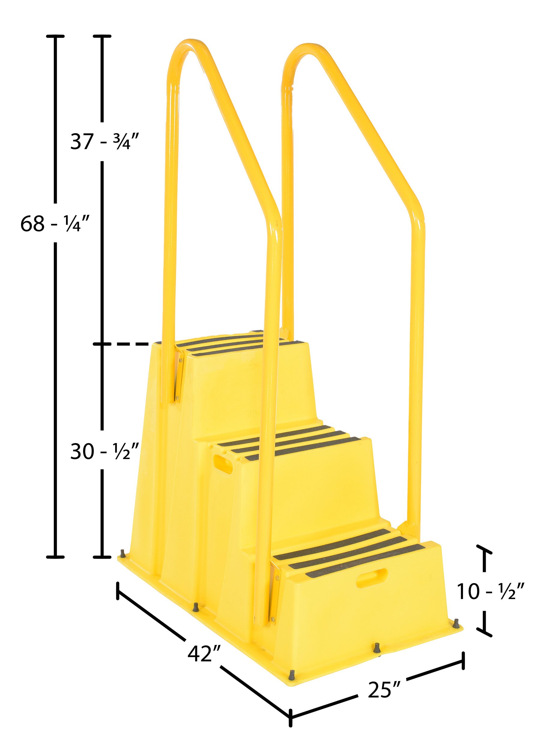 | Third Step Height (in.): 30-1/2 | Material: Polyethylene | Caster & Handrail Attachment Method: Bolt-On |