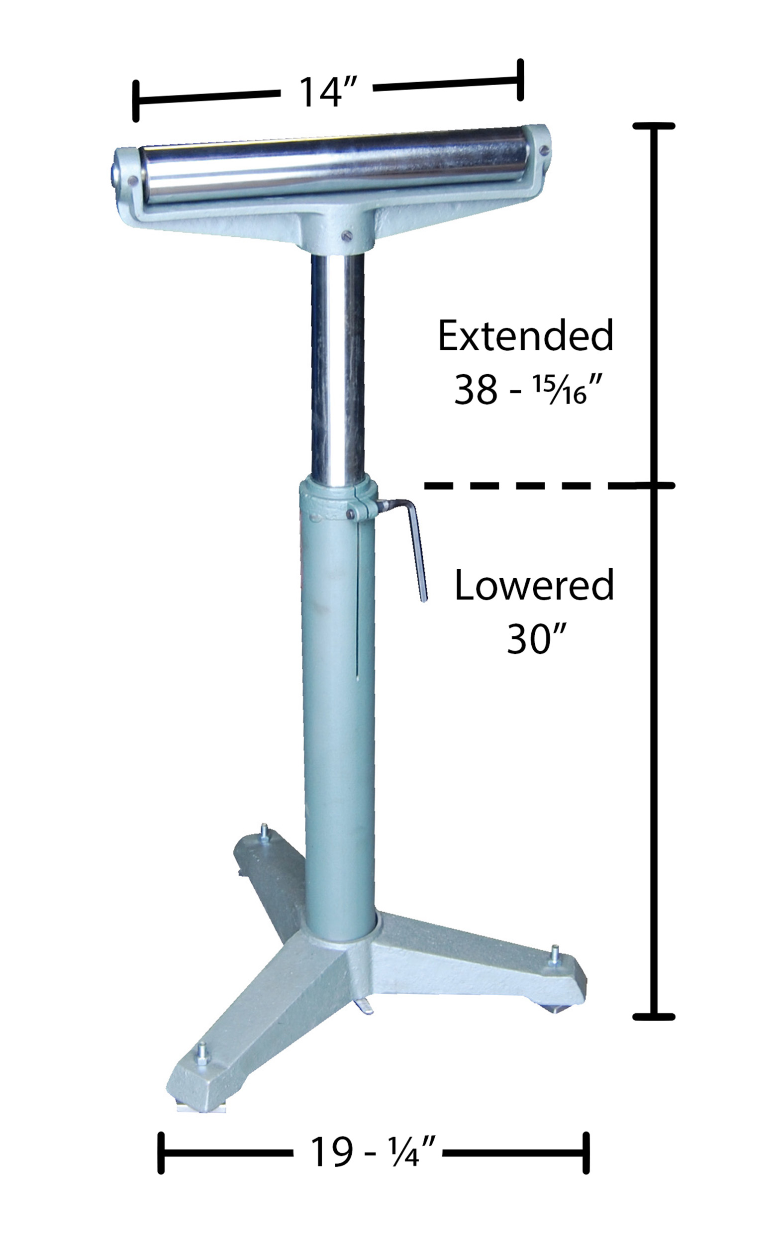 The deluxe roller stand is designed for use as an extra hand when working with long materials. Each stand includes chrome plated rollers and heavy-duty cast-steel base. This deluxe roller stand is a flat single roller design. The height of each stand is adjusted with a friction lock screw or a gas charged cylinder. The unit is great for use in machine and wood shops and also includes a counter balance mechanism. Models utilize a gas charged cylinder for maximum efficiency and precise positioning. The gas cylinder minimizes adjustment time and limits manual interaction with the unit.