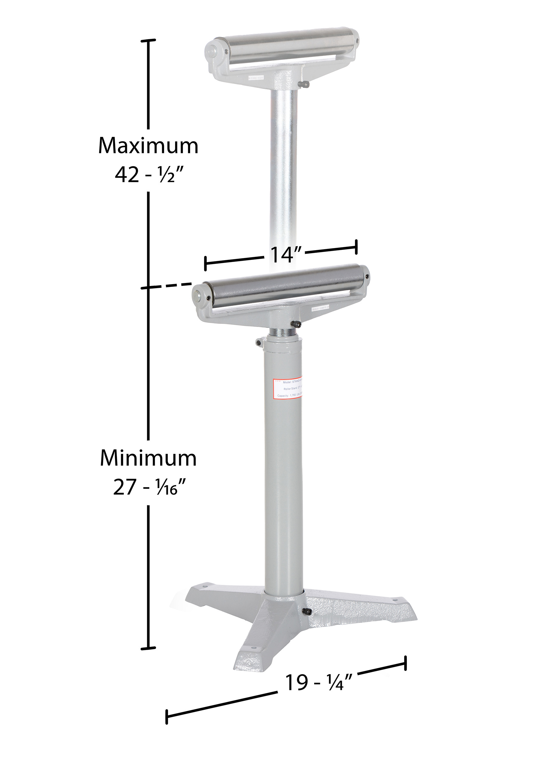 Steel Horizontal Roller Stand 27 In. to 42 In. Raised Height 1,760 Lb. Capacity Gray