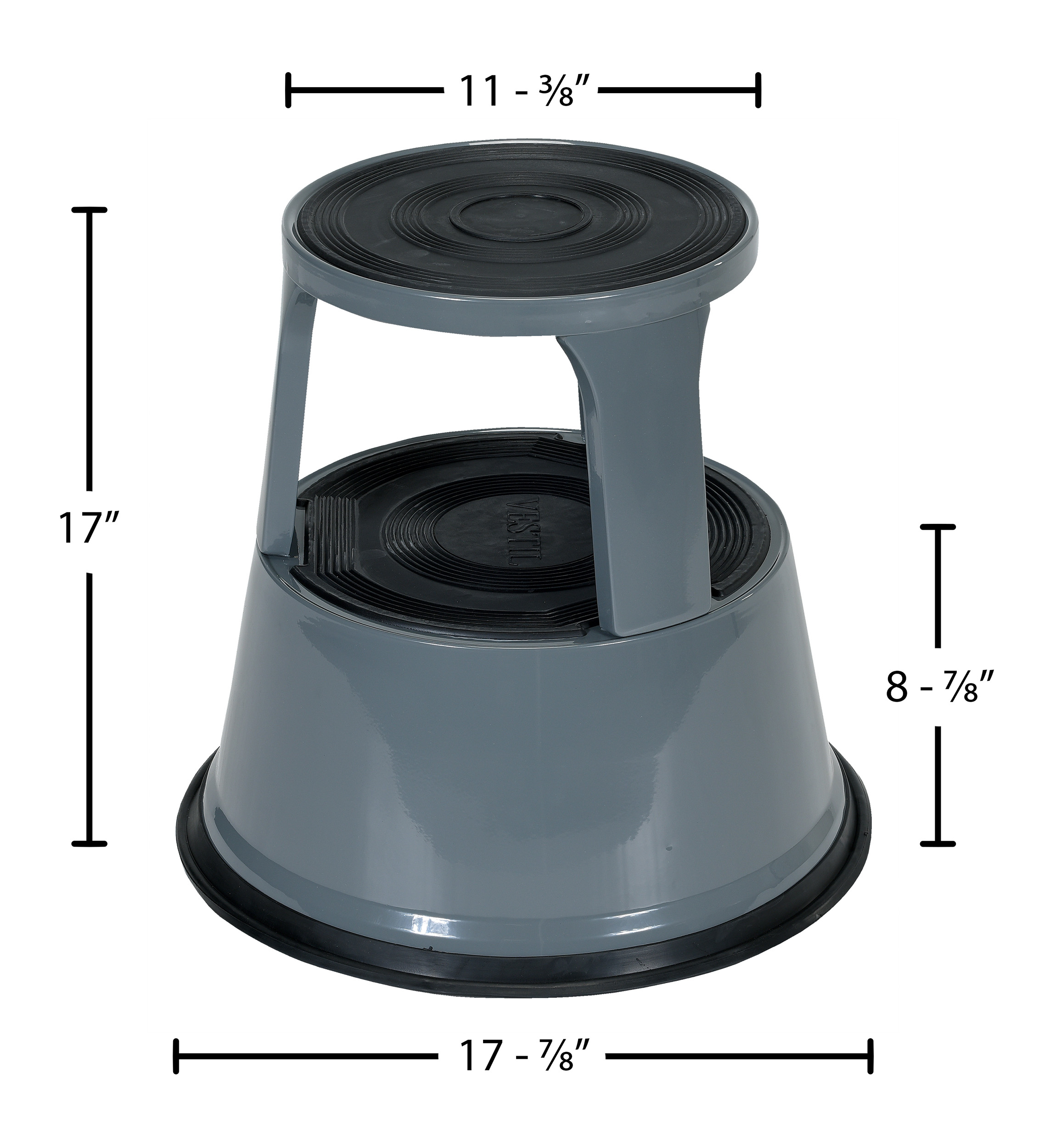 Steel Rolling Step Stool 17 In. Top Step Height 500 Lb. Capacity GrayThis rolling step stool is convenient and easy to use. Spring loaded casters along with a rubber ring around the base provide the extra grip needed when being used. Each step includes a rubber surface. Easily assembles without need for tools.