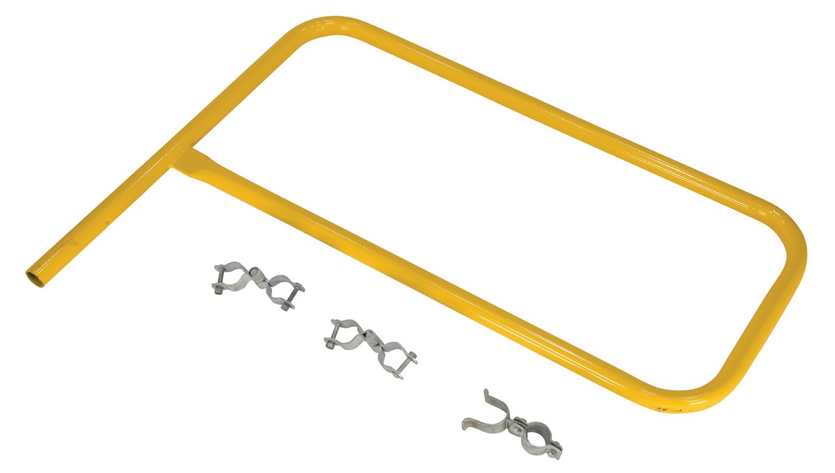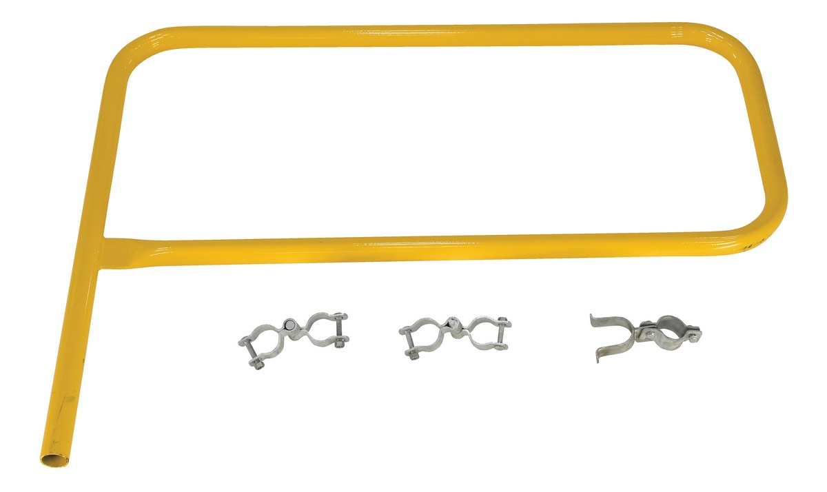 Steel Pipe Safety Railing Gate P-Shaped 36 In. x 36 In. YellowThe steel gate works great as an addition to the pipe safety railing. The steel construction is durable and visible with a yellow finish. Hardware for simple installation is included.