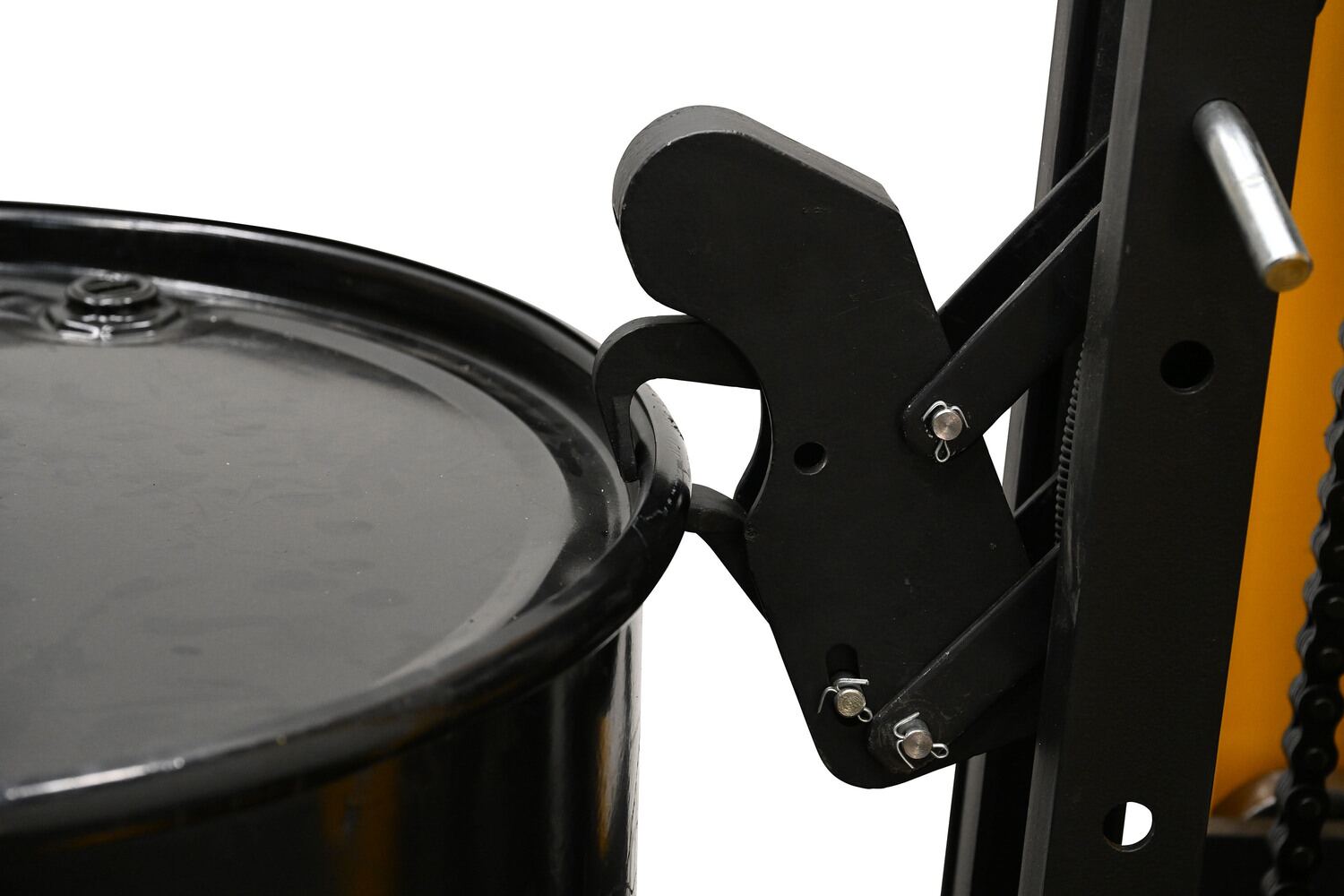 A single drum gripper attachment is a great accessory. The unit lets the user secure and release drums quickly and efficiently. With a unique design, the unit grasps the lip of the drum and stabilizes the drum in place. The utilization of this product limits the use of other lifting devices in crowded workshop areas.