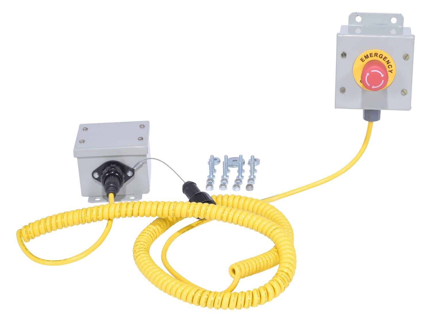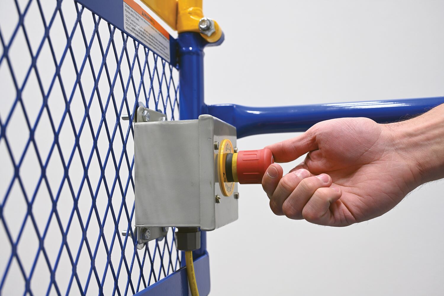 Emergency Stop Button Kit For Work Platform ModelsThe emergency stop button kit is great for the distribution and shipping facilities. The unit allows the operator to shut off the fork truck power from the work platform. The unit is designed to work on gas powered fork trucks, and can be adapted to work on electric or diesel fork trucks. When installed, simply push in on the emergency stop button to immediately stop the unit.